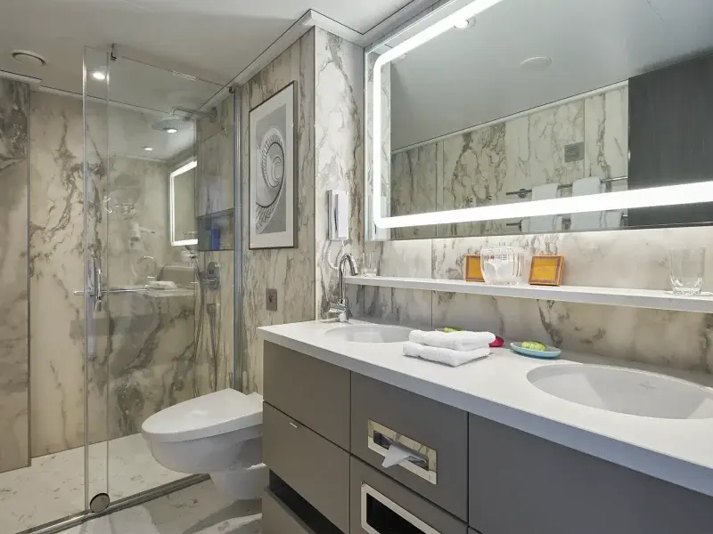Our suites can be connected to an adjacent Category A stateroom to create a 2-bedroom, 2-bath suite, measuring more than 750 square feet.